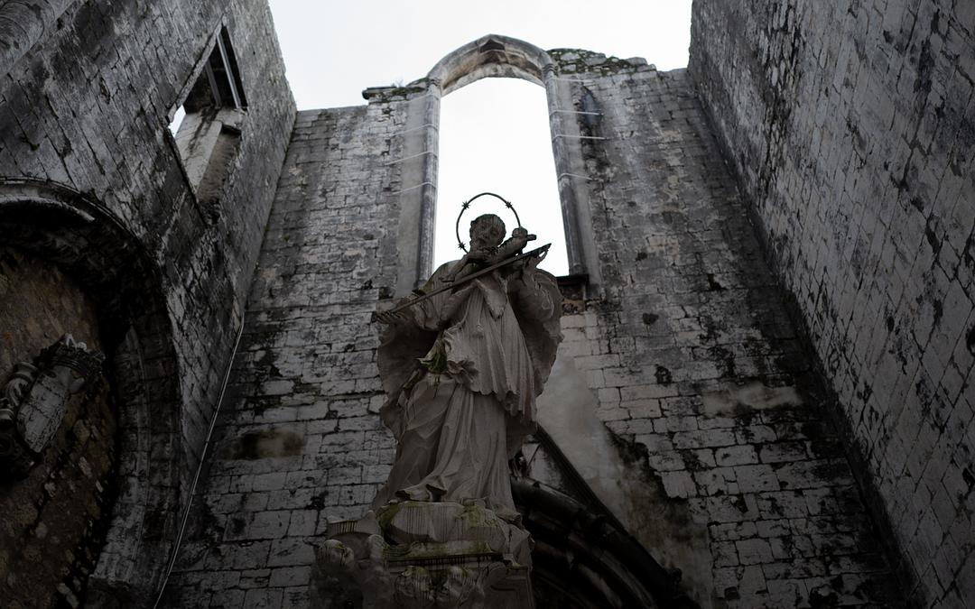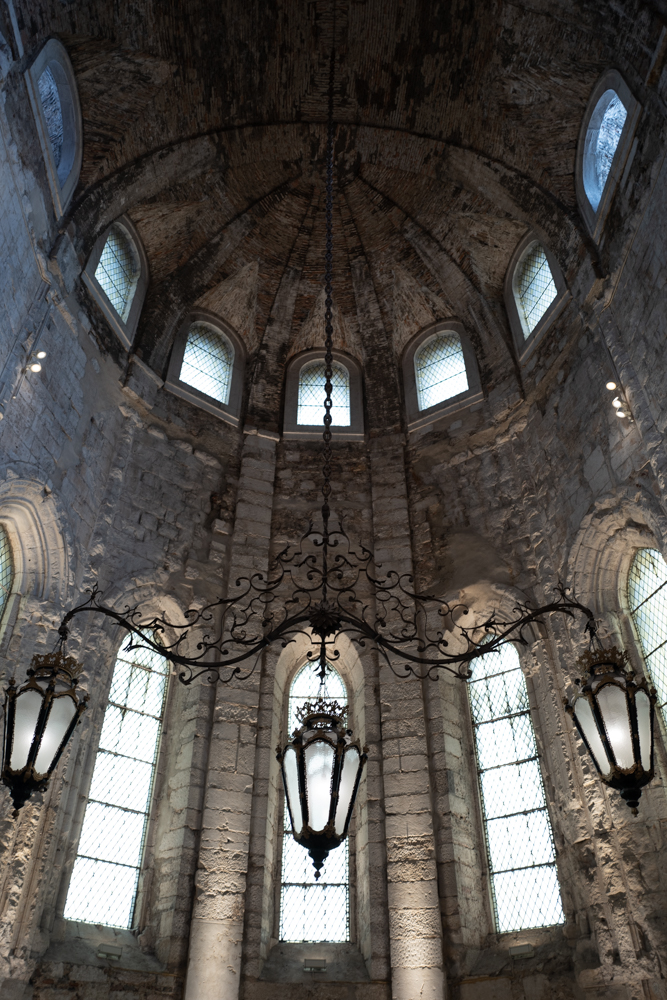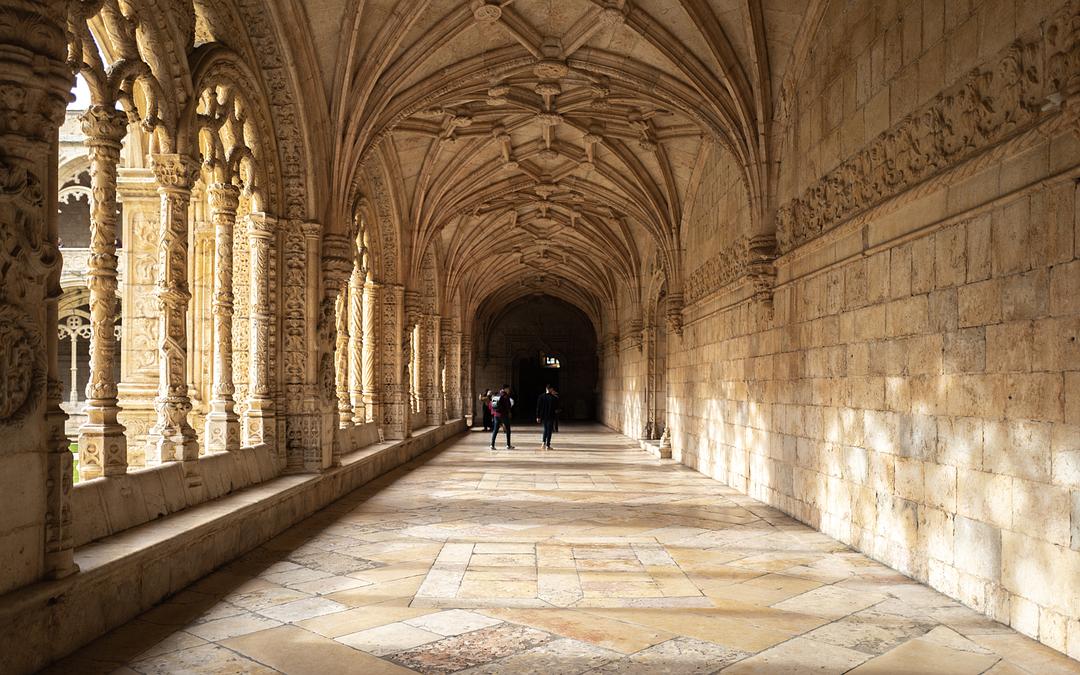 In Lisbon, besides the Cathedral, there are two very famous monasteries. One is on the edge of the city center, called the Carmo Convent. Because of an early earthquake, it lost its roof, leaving only walls and flying buttresses. The other is in the west of the city along the coast, called the Jerónimos Monastery.