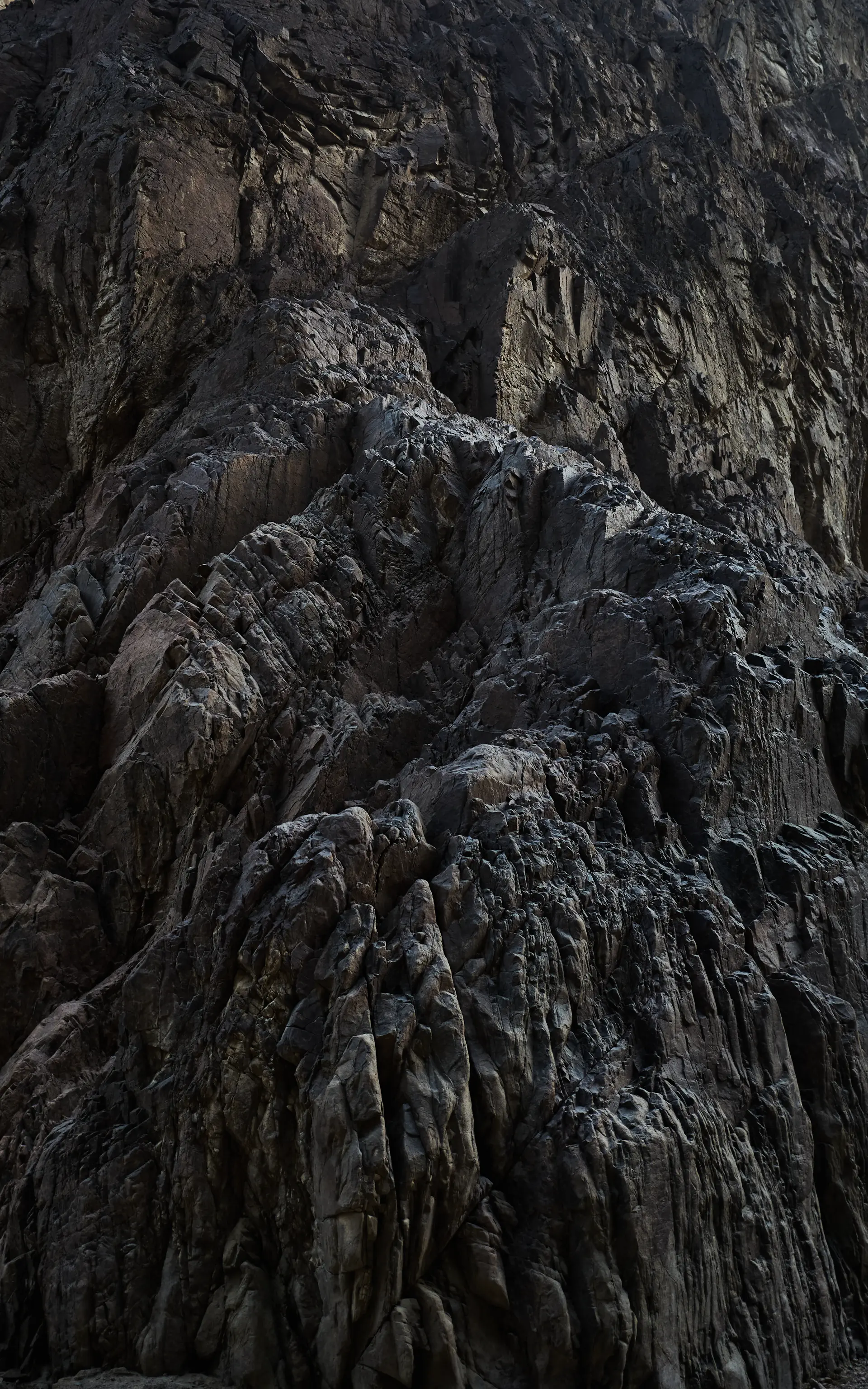 The tactile sensation of real rock is superb. Although the surface is somewhat slippery, it is far harder and more solid than the artificial holds in a gym. The interior is a solid core that feels reassuring to the touch. The structure is endlessly varied, with protrusions of all sizes combined in wild abandon.